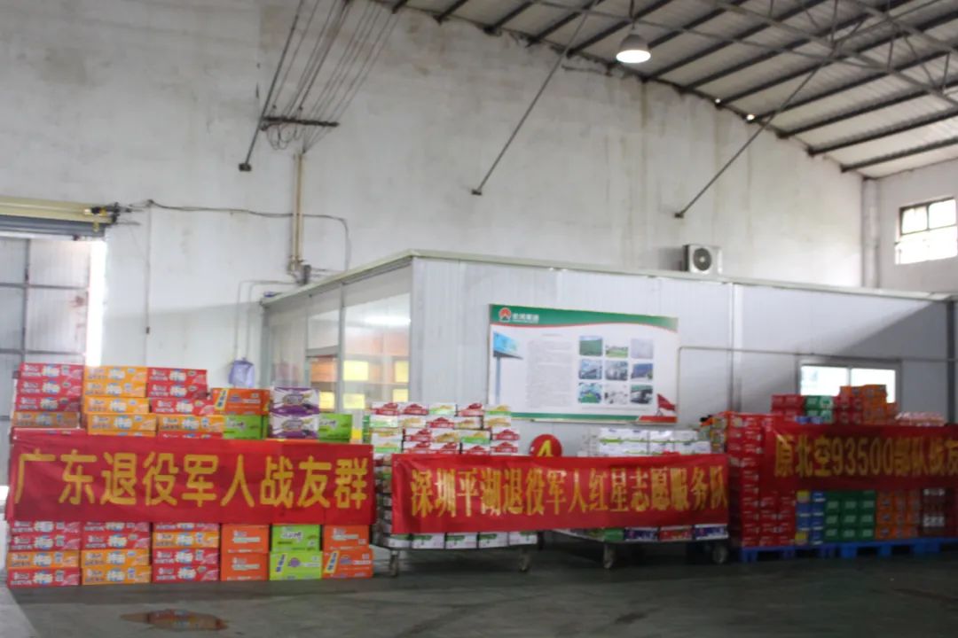 On the afternoon of August 6, Honghong Group's food distribution truck loaded with supplies slowly entered a military base. The car is loaded from the former North air 93500 troops Comradees-in-arms Association, Guangdong retired soldiers Comradees-in-arms group, Pinghu retired soldiers Red Star volunteer service team.