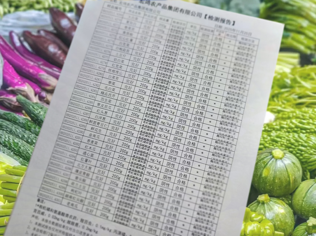 宏鸿委托第三方检测机构实施月度定检,检测维度更为全面,覆盖种植基地水土气安全、菜品质量理化指标、营养成分及自检未触及的低频次高风险项目。
